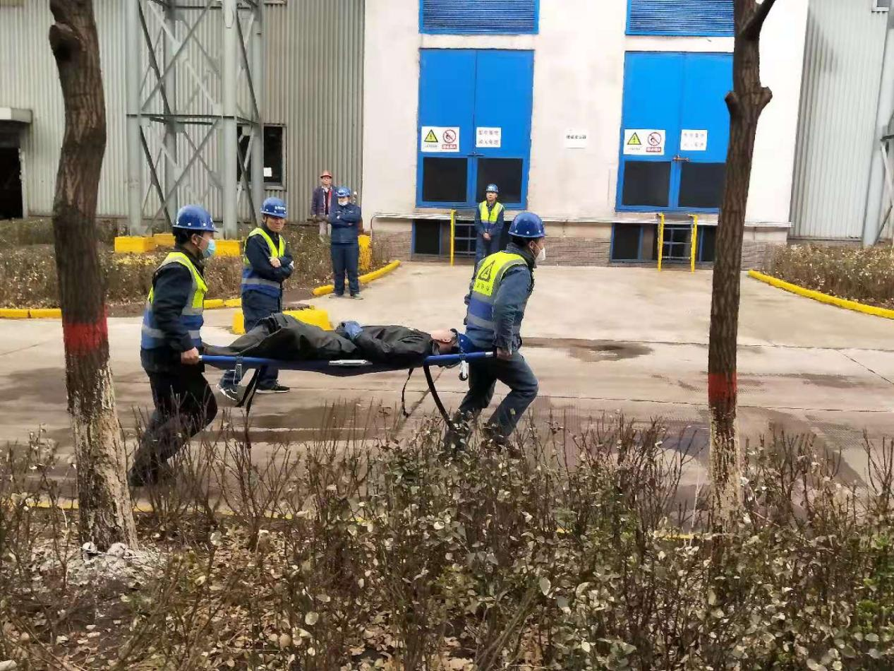 氨水泄露事故應(yīng)急救援演練組長接到事故報告后,立即組織各應(yīng)急救援人員趕到現(xiàn)場,依據(jù)職責(zé)分工展開應(yīng)急救援處置。現(xiàn)場警戒人員拉起警戒線,嚴(yán)禁無關(guān)人員進(jìn)出,搶救人員、檢修人員全副武裝,火速將“傷者”抬出,醫(yī)療人員用清水清理眼睛,各個小組按各自職責(zé)及時做好了各項應(yīng)急處置工作,較好的完成了預(yù)定任務(wù),整個演練過程有條不紊,緊張有序。