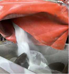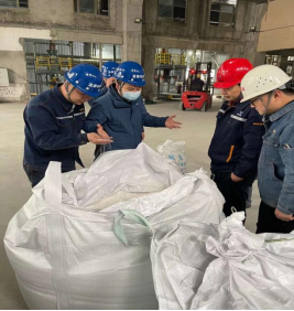 12月10日成渝釩鈦安環(huán)部部長楊俊良、威遠(yuǎn)藍(lán)鼎總經(jīng)理唐剛、生產(chǎn)部長曾中東在現(xiàn)場(chǎng)等候第一批合格硫酸鈉的產(chǎn)出。10:11第一批合格的硫酸鈉順利產(chǎn)出23噸,14:00生產(chǎn)員工將料倉內(nèi)硫酸鈉用小包裝和噸袋進(jìn)行獨(dú)立包裝。
