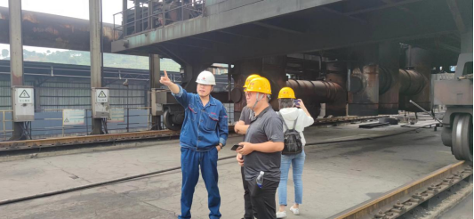 第二組在生產(chǎn)部副部長王建勇的帶領(lǐng)下來到了煉焦的生產(chǎn)現(xiàn)場推焦機旁,針對現(xiàn)場重主要設(shè)備的名稱及作用進(jìn)行行詳細(xì)了解。