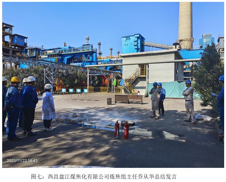 演練結(jié)束后,西昌盤江煤焦化有限公司煉焦組主任喬從華、西昌藍鼎生產(chǎn)部副部長王建勇對此次演練做了總評,對演習中出現(xiàn)的問題進行了分析總結(jié)。并強調(diào)演練就是實戰(zhàn)。通過開展應急演練,查找檢驗預案中存在的不足,提高應急預案的可用及操作性;完善物資準備,發(fā)現(xiàn)不足及時調(diào)整;鍛煉隊伍,提高應急處置能力;磨合機制,進一步明確相關(guān)人員的職責和任務;科普宣傳,提高職工風險防范意識和應對突發(fā)事故的自救互助能力。